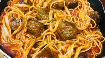طريقة عمل مكرونة بكرات اللحم والصوص الاحمر- أكلات سهلة وسريعة