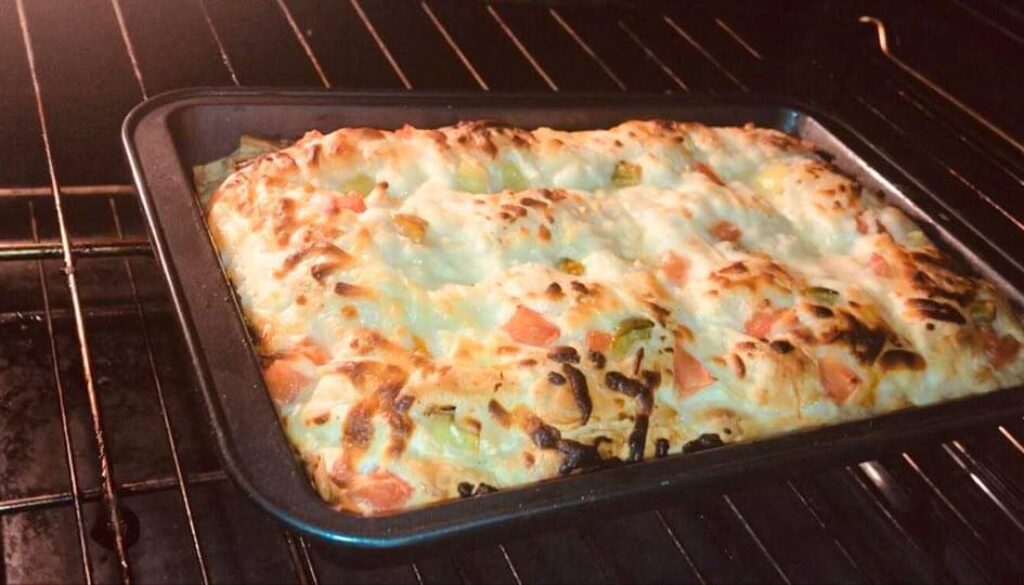 المكونات لعمل صينية جلاش حادق متوسطة الحجم باستخدام عجينة الجلاش